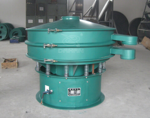 Φ1000型振動篩為直徑1000mm的兩層三個出料口振動篩,子母網分離式網架,接觸物料部分以及防塵蓋均為304不銹鋼材質,底座部分為Q235碳鋼材質。