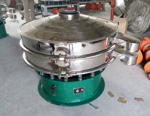 Φ800型振動篩為800mm直徑兩層三出口標準旋振篩,上半部為碳鋼材質,底座也為碳鋼材質。
