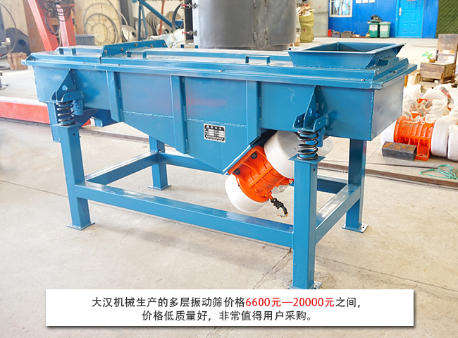 隨著生產節(jié)奏的加快,單層直線振動篩已經完全無法滿足生產需求,多層直線振動篩就是由直線振動篩改造升級的一款高效篩分設備。多層直線振動篩可以將物料分級為多種規(guī)格,實現一次投料出多種規(guī)格物料,可以有效節(jié)省時間成本。由于不同廠家生產的多層直線振動篩型號、生產工藝等不同,所以就導致市場上多層直線振動篩價格不一,那么一臺多層直線振動篩一般都多少錢呢?大漢小編將為您解答: