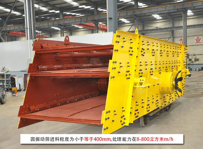 圓振動篩進(jìn)料粒度為小于等于400mm,處理能力在8-800立方米m/h