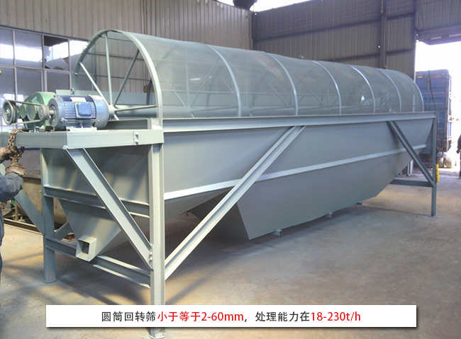 圓筒回轉(zhuǎn)篩小于等于2-60mm,處理能力在18-230t/h