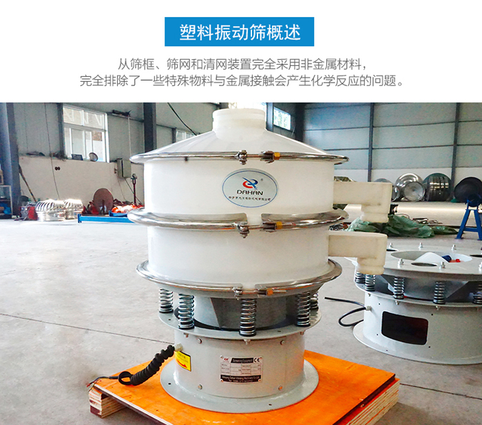 塑料振動篩也叫聚丙烯振動篩,塑料振動篩主要是為了解決篩分物料與金屬接觸而產(chǎn)生化學反應的問題。聚丙烯振動篩:從篩框、篩網(wǎng)和清網(wǎng)裝置完全采用非金屬材料,完全排除了一些特殊物料與金屬接觸會產(chǎn)生化學反應的問題。