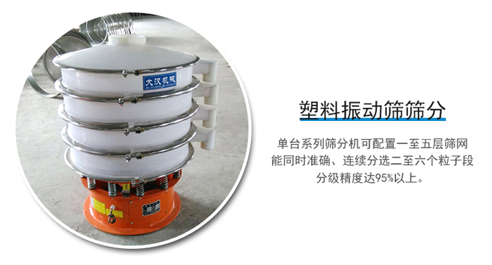 塑料振動篩區(qū)別與不銹鋼材質(zhì)振動篩,就是耐腐蝕性比不銹鋼振動篩要好,篩分就是把固體顆粒分成大小相等的不同粒子組。單臺系列篩分機可配置一至五層篩網(wǎng),能同時準確、連續(xù)分選二至六個粒子段;分級精度達95%以上。