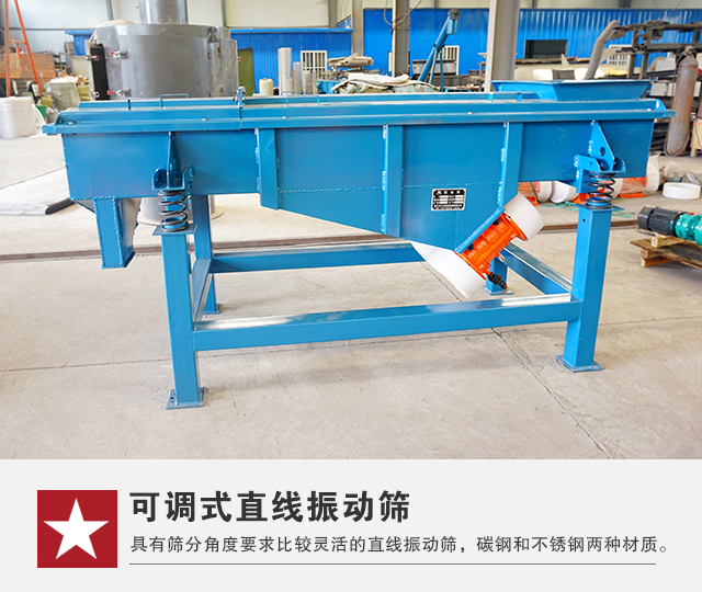 該設(shè)備主要是針對一些對直線振動篩篩分角度要求比較靈活的直線振動篩,該設(shè)備有碳鋼和不銹鋼兩種材質(zhì)進行選擇。