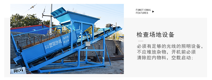 4.儲料斗容量大,使裝載機合理安排主設備(如攪拌站)與篩砂機的上料時間,避免裝載機在不同上料點 及原料間頻繁換位,使裝載機輕松上料,降低勞動強度。