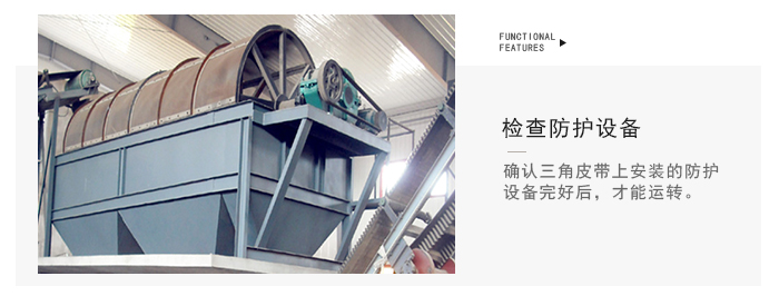 滾筒篩篩沙機主要由電機、減速機、滾筒裝置、機架、密封蓋、進料口、出料口等部分組成。滾筒裝置傾斜安裝于機架上。電動機經減速機與滾筒裝置通過聯軸器連接在一起,驅動滾筒裝置繞其軸線轉動。當物料進入滾筒裝置后,由于滾筒裝置的傾斜與轉動,使篩面上的物料翻轉與滾動,使合格物料(篩下產品)經滾筒后端底部的出料口排出,不合格的物料(篩上產品)經滾筒尾部的排料口排出。由于物料在滾筒內的翻轉、滾動,使卡在篩孔中的物料可被彈出,防止篩孔堵塞。